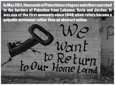 The Arab uprisings that began in 2011 have changed the political landscape of the Middle East and opened the door for many new possibilities. Shedding the fear of decades-long repression, the people have united to challenge and overthrow the dictatorial regimes of the Arab world. Soon after the end of Mubarak’ rule in Egypt and Ben Ali’s rule in Tunisia, in a moment inspired by the uprisings of their Arab neighbors, the image of return for Palestinians transformed into an imminent possibility. In May 2011, thousands of Palestinian refugees and others marched to the borders of Palestine from Lebanon, Syria and Jordan. Some Palestinians were able to cross the border and visit their family’s homes for the first time in their lives, risking everything along the way. This action gave Palestinians a glimpse of freedom, as well as a more complete picture of the obstacles that obstruct the path to their homeland. Their march homeward symbolized a people suspended somewhere between time and space, living on the margins of society and within the borders of their dreams. Their march home lifted the spirits of many around the world, especially Palestinians, for it was one of the first moments since 1948 when return became a reality; it became a palpable movement rather than an abstract notion.