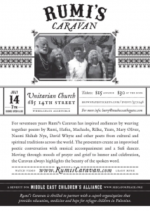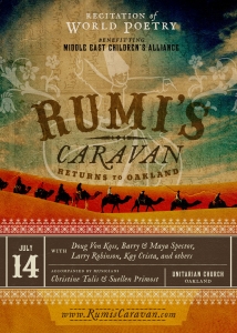 A Poetic Conversation: For fifteen years Rumi’s Caravan has inspired audiences, weaving together poems by Rumi, Hafez, Machado, Rilke, Yeats, Mary Oliver, Joy Harjo, Naomi Shihab Nye, David Whyte and other poets across the world.