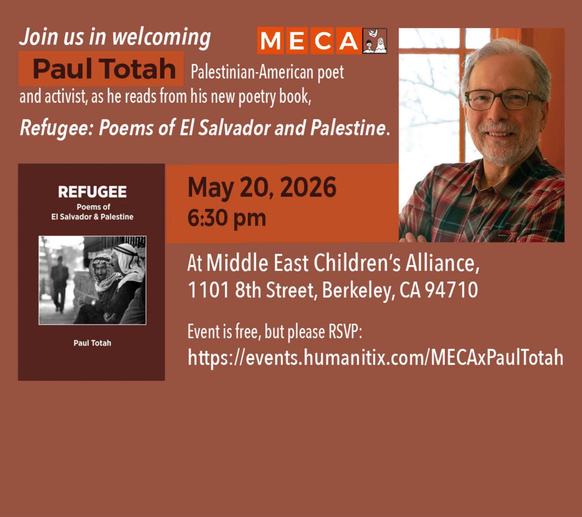 Shop Palestine Spring Bazaar Date: Sunday, May 3 2026 Time: 11 am - 5 pm Location: MECA Offices, 1101 8th Street, Berkeley CA 94710 We're excited to announce our second Shop Palestine Spring Bazaar happening Sunday, May 3rd from 11am - 5pm at our offices on 1101 8th Street in Berkeley. We will have our new [...]