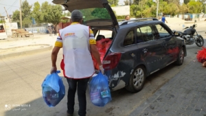 Volunteers and staff from six partners in Gaza distributed food parcels to 1250 families in need in August