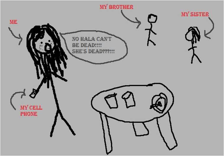 Anyway, I got to Hala’s house and felt at ease finally. I thought maybe I’d better stay there for the night and go home the next day, because I wasn’t sure whether the Israelis were done bombing stations along Salah Al-deen’s street. Though Hala’s dad, whose birthday is on that same day, saw what’s coming; he’d even gone grocery shopping just in case. As he got back, he took me with his car to the nearest taxi stop where I can take a ride home to KhanYounis.